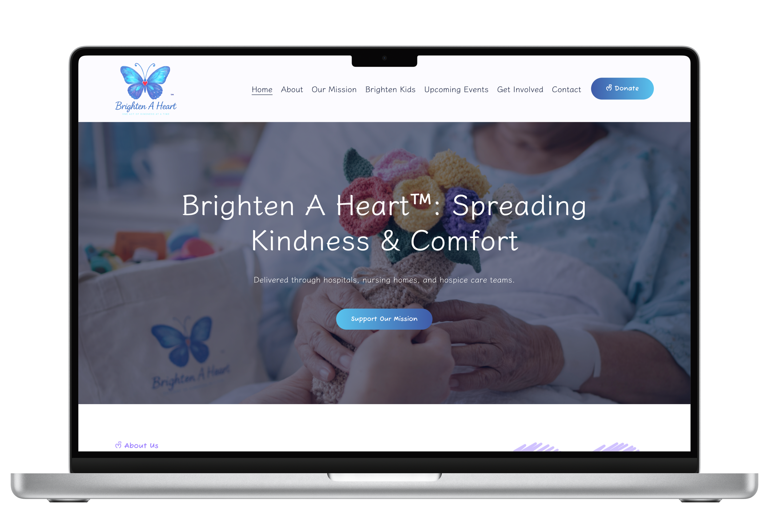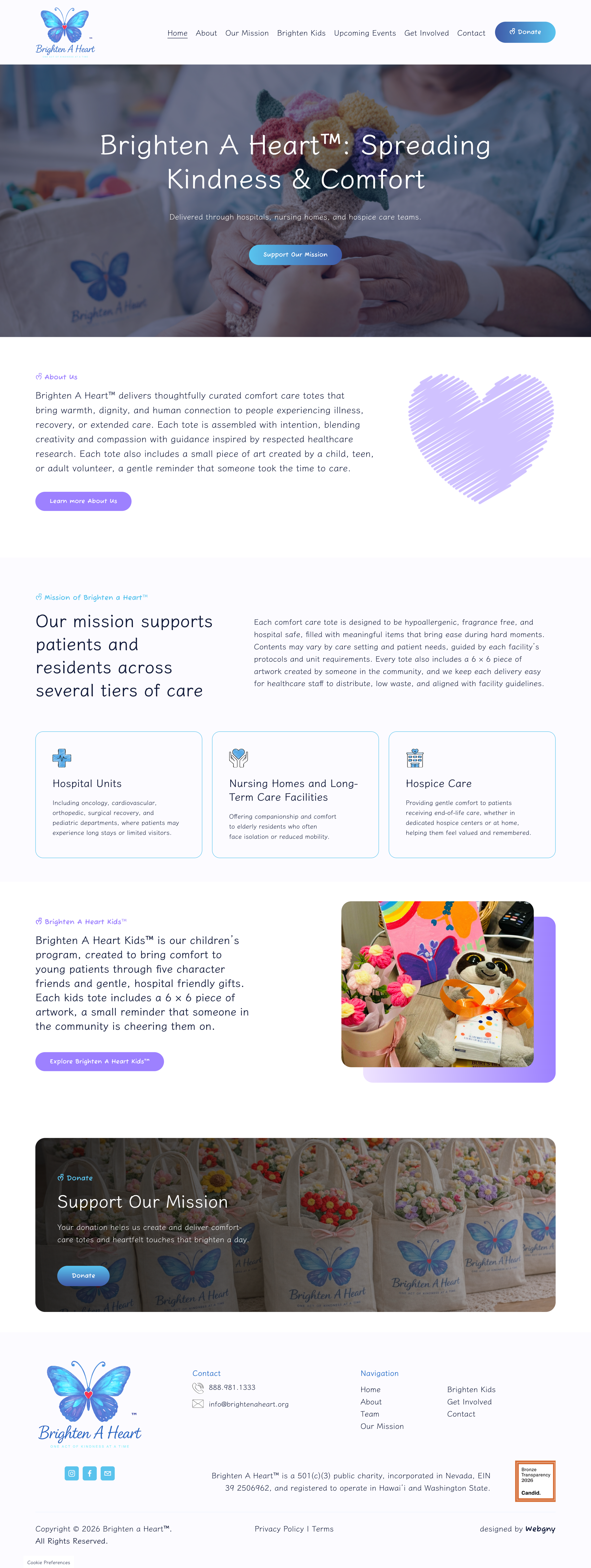 Brighten A Heart needed a website to clearly present their mission of delivering comfort to patients in care facilities. The site had to build trust, showcase their impact, and inspire visitors to donate or volunteer.